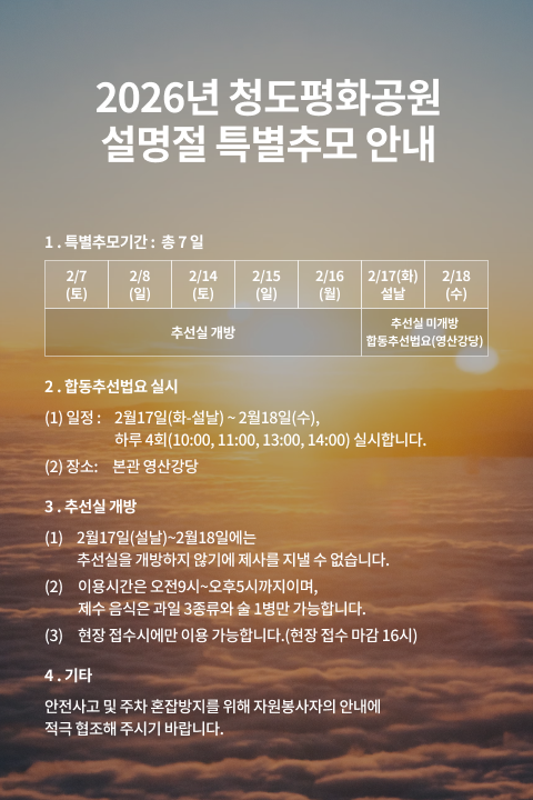 고인과 교감하고 생명의 쉼을 얻는 청도평화공원입니다.